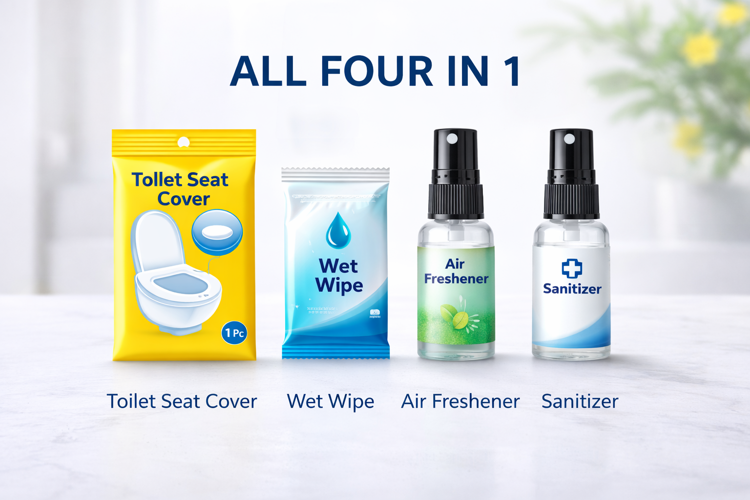 WTFix is een compact 4-in-1 hygiëneproduct dat toiletseat cover, geurverfrisser en een frisse spray en wet wipes combineert in één handig item voor onderweg. Het is speciaal ontworpen om je snel en gemakkelijk een schoon, fris en comfortabel gevoel te geven bij het gebruik van openbare toiletten.